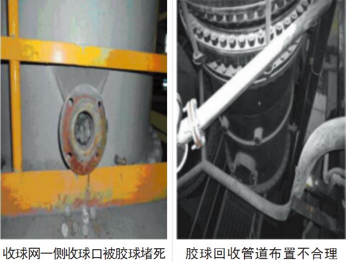 收球網(wǎng)一側(cè)收球口被膠球堵死;膠球回收管道布置不合理;