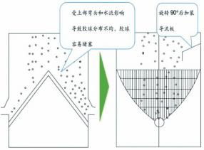 圖4收球網(wǎng)改造前后膠球分配示意圖