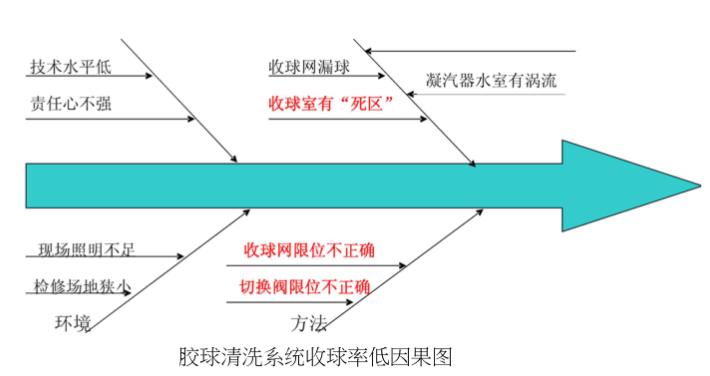 目標值:使膠球清洗裝置收球率95%。#3機膠球清洗裝置系統收球率太低,不能在機組運行時清潔凝汽器,而且大量膠球隨循環水進入了冷卻塔,使冷卻塔濾網堵塞嚴重,影響了循環水流量,使機組的安全運行受到了極大的威脅,因此,對膠球清洗裝置系統改進,提高收球率是必耍的。