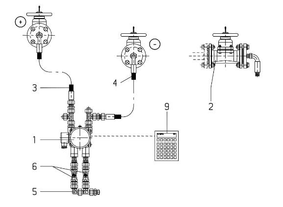 沖洗閥6測量時將壓差測量表與沖洗水分離。打開相應沖洗閥,可用外部水源將壓差測量表以及柔性管內的雜質沖洗干凈。